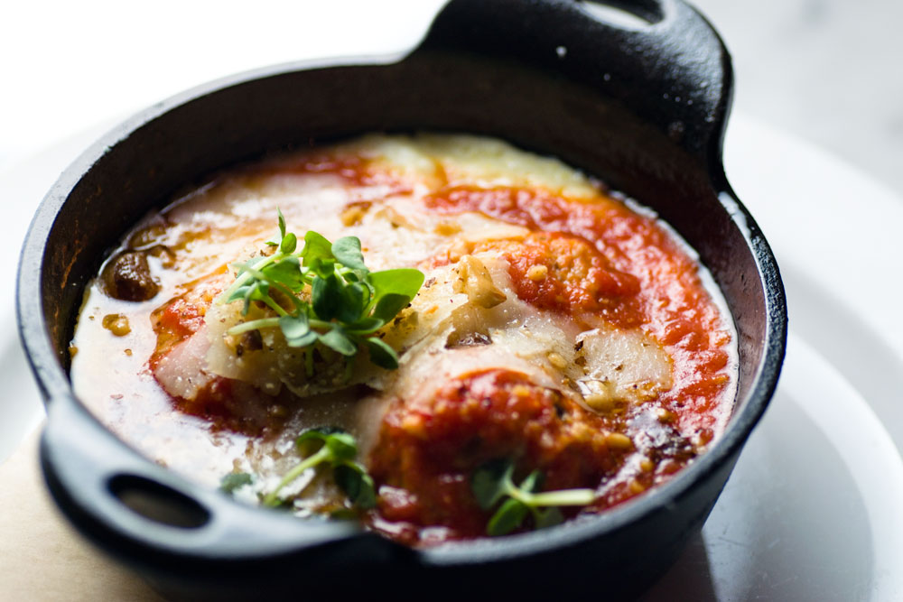 The new cocktail menu was created by Bar Manager Justin Czarnecki and Clint “Spotty” Spotleson. The drinks have an Italian theme and use more aperitif wines such as Campari, Amaro, and Cocchi Americano (these seem to be a favorite of Spotty). According to Czarnecki, “the cocktails aren’t overly complicated but done just right.” We couldn’t agree more! We tried the Surfer Rossa (Cocchi Americano Rosso, Apricot, Fresh Squeezed Lime), the Garden Gimlet (Vodka, Basil, Red Bell Pepper, Fresh Lime Juice) and the Devil’s Kiss (Campari, Dewars White Label, Orgeat, Prosecco, Muddled Strawberry and Mint). While all three drinks were amazing (basically anything with bubbles is a winner in my book), the Garden Gimlet was the standout drink of the evening. This drink is basically everything a Bloody Mary wishes it could be. It isn’t too savory or too sweet. The use of red bell pepper juice in this drink brings out such an interesting taste and Maldon Sea Salt tones down the sweetness. Not only is this drink creative, but it is perfectly balanced. Some other drinks on the menu that we are going to have to go back and try are the Scarlett O’Hara (Russel’s Reserve Rye 6yr, Sherry, Peach infused Amaro Ramazzotti) and the Rock and Rye (Knob Creek Rye over orange, clove, and vanilla infused Ice Ball). Unrelated to the new cocktail menu but also important, Justin makes an amazing dry and dirty martini and the bleu cheese olives are hand stuffed in house with Maytag Blue Cheese.