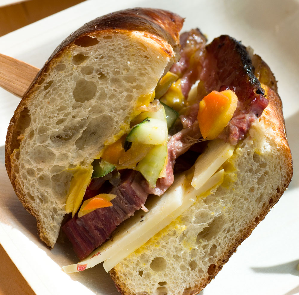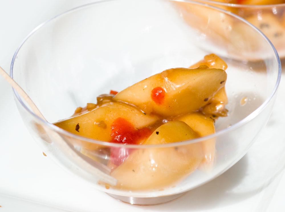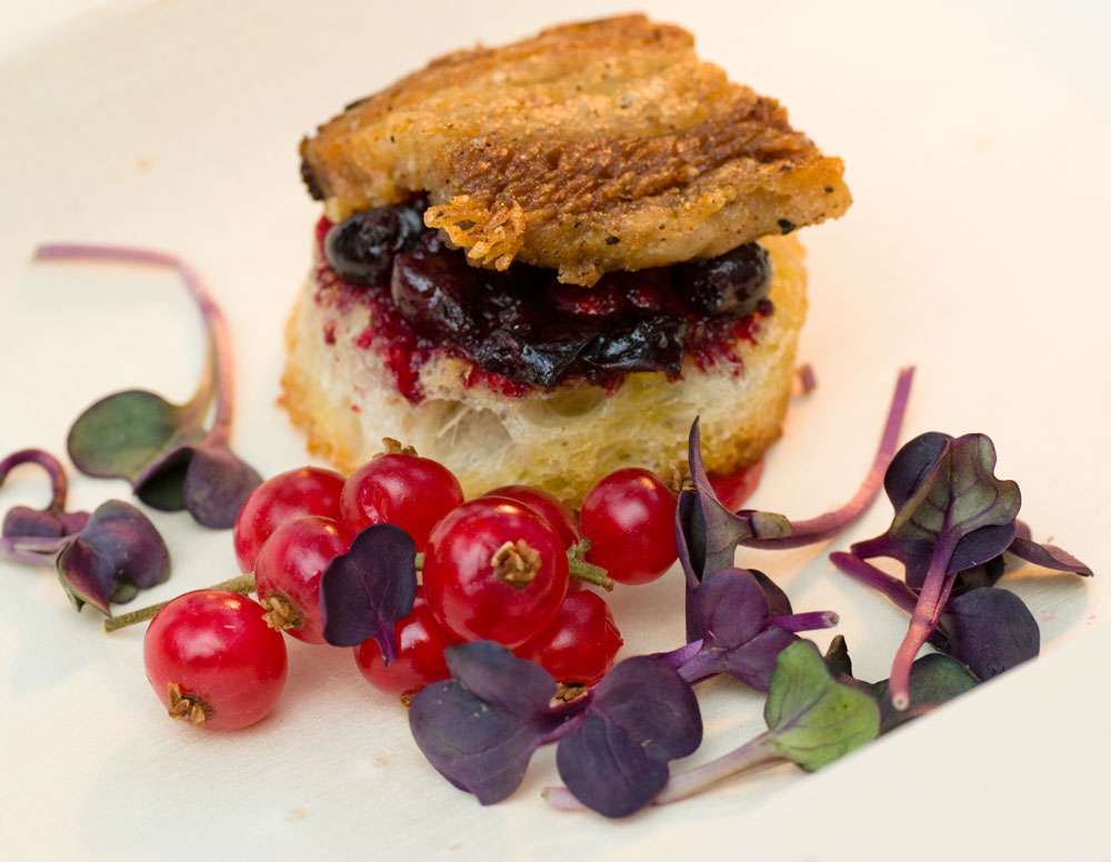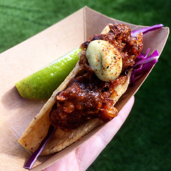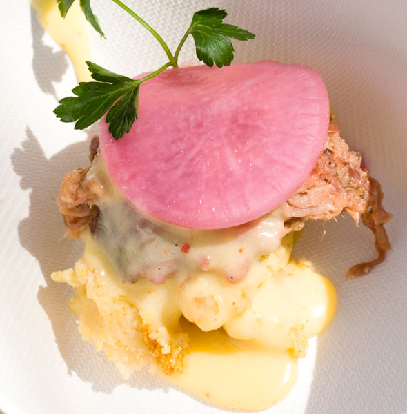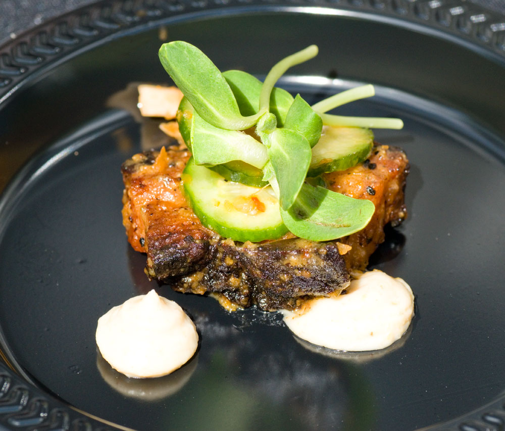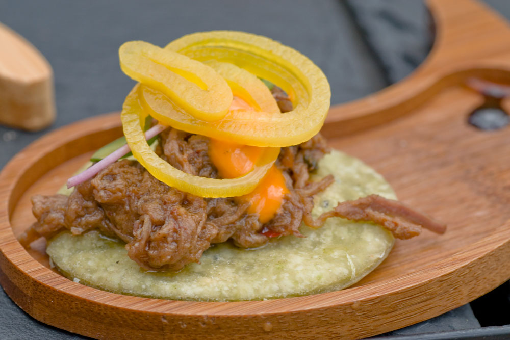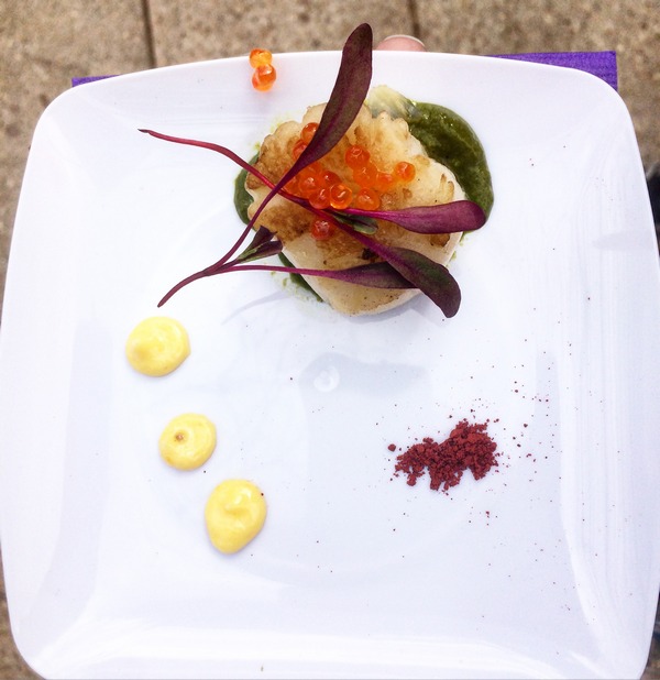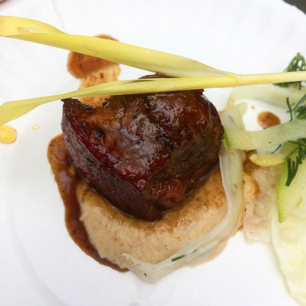 This category is the only one that Matthew and I disagreed on. While everything we ate was incredible we both had our favorites. Matthew’s favorite was the BLT Cauliflower Panna Cotta from Elements at Sanctuary Resort and Spa. It featured tomato jam, fried kale, and bacon dashi. Having never had a savory panna cotta it was my favorite as well, that is until we met Chef Gio Osso from Virtu. Chef Osso was serving Testa and N’duja on flatbread. I tried the N’duja (basically spicy head cheese) and it blew my mind (pun intended)!
