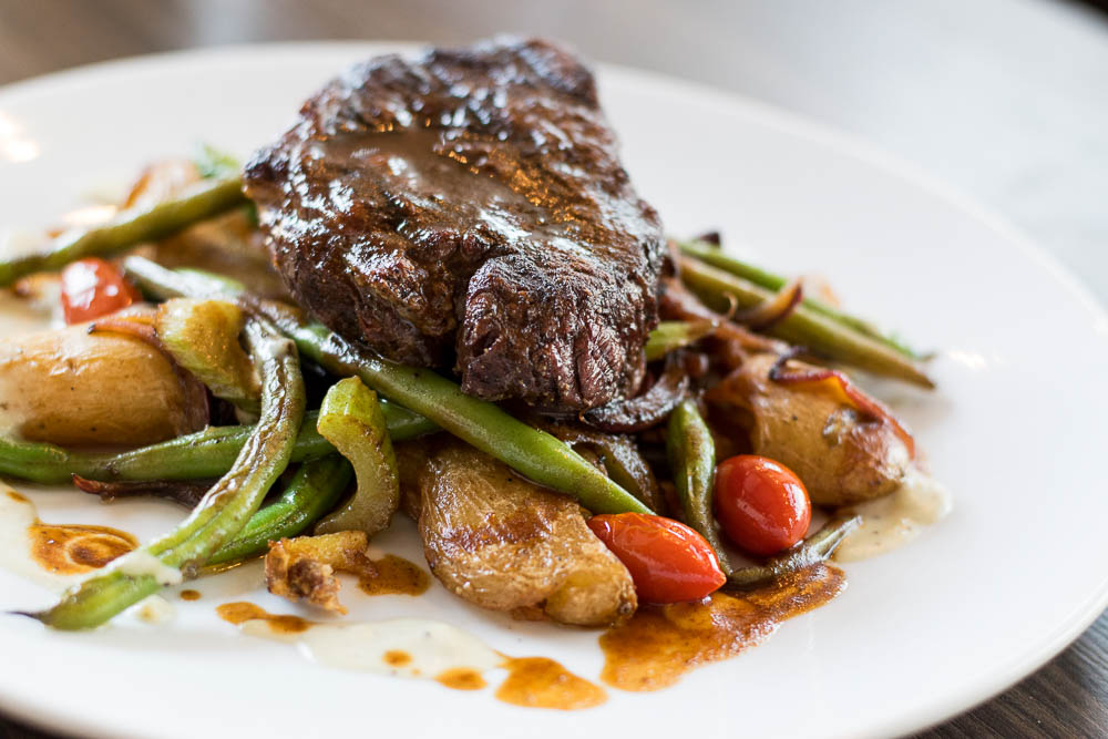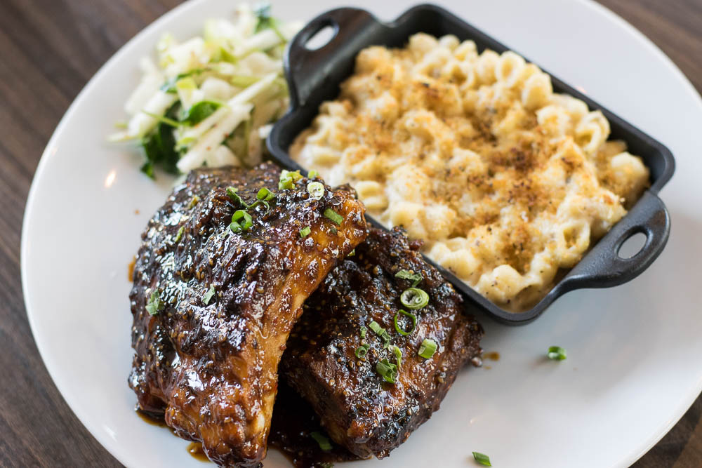 The sauce on the ribs was amazing (not going to lie, we already have discussed trying to make a copy cat recipe at home)! It was spicy and had that great sweet and cilantro-esque flavor you’d expect from an Asian style sauce. We also noticed that the sauce really brought out the gouda in the mac-n-cheese! The tenderloin was cooked to a perfect medium rare (which seems to be harder than you’d think). The ancho bourbon demi was out of this world! According to our server it takes 72 hours to make it and the flavors built are fantastic!