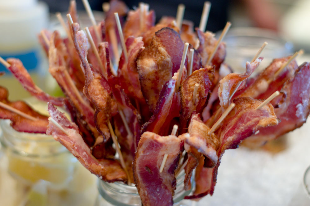 The first thing you see when you walk in is the Build Your Own Bloody Mary Bar. We spoke with Adrian, one of The Hash Kitchen’s Bloody Mary Stylists, he told us about how much work goes to preparing all of the components in the BYOBMB. The BYOBMB boasts 40 different toppings, home made salts (celery and bacon), and vodka infused in house (jalapeno, bacon, cucumber, cilantro lime and smoked salmon). The Bloody Mary mix comes in three levels of spiciness: mild (standard seasoning), medium (chile pepper), and hot (habanero). Among the toppings are: bacon, beef jerky, salami, pickled vegetables (the brussels sprouts were incredible!), olives, traditional vegetables (celery, carrots, olives) and even fresh blue point oysters!  We always thought we didn’t like bloody marys but it turns out we just don’t like bad bloody marys. Hash Kitchen has some of the best in the valley! We also tried one of their seasonal fruit mimosas and par for the course thus far, it was great! It wasn’t all fruit juice with a splash of bubbles but rather the opposite.