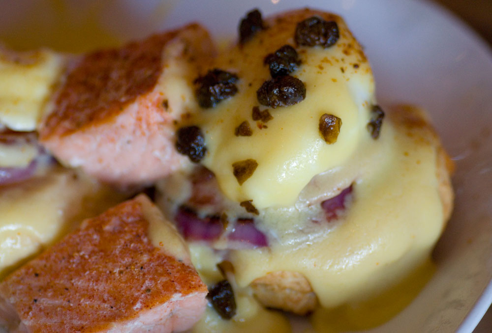 After making a bloody mary we ordered breakfast. At the recommendation of our server we ordered the Lump Crab and Sweet Potato Hash and the Smoked Salmon Eggs Benedict. Both were absolutely incredible! The smoked salmon on the Smoked Salmon Eggs Benedict is smoked in house and is an actual piece of salmon versus the type you’d expect to find on top of a bagel. It is also topped with fried capers which are the perfect addition to anything with salmon. The most important thing to note here however, is that the eggs were PERFECTLY poached. For whatever reason, it seems that poached eggs being done correctly is a difficult thing to find in most breakfast spots. When we commented to owner Joey Maggiore that the poached eggs were expertly done, he told us that rather than making them in advance like a lot of restaurants, each egg is poached to order. This attention to detail showed in both of our dishes. The Lump Crab and Sweet Potato Hash was loaded with succulent lump crab, the eggs were also poached to perfection, and the potatoes were cooked exactly the way you’d expect in a hash. Both breakfasts were served with biscuits (on the side for the hash and as the bread component on the benedict) that were light and fluffy on the inside but nice and crusty on the outside. They also provided a good element of sweetness to both dishes.