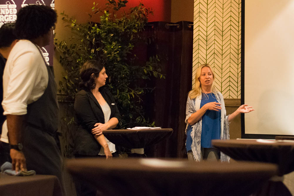 We recently attended a kick off event for the Blended Burger Project. We tried burgers by Bernie Kantak of The Gladly, Gio Osso of Virtu and Stephen Jones of The Larder + The Delta. Each chef did a different take on the blended burger. Chef Bernie used ground chuck, shiitake mushrooms, chorizo jerky, and bone marrow aioli. Chef Stephen’s take featured ground short ribs, “lots of red wine”, shallots, calabrian chiles, caramelized onion and mushroom jam, and a mushroom mixture that