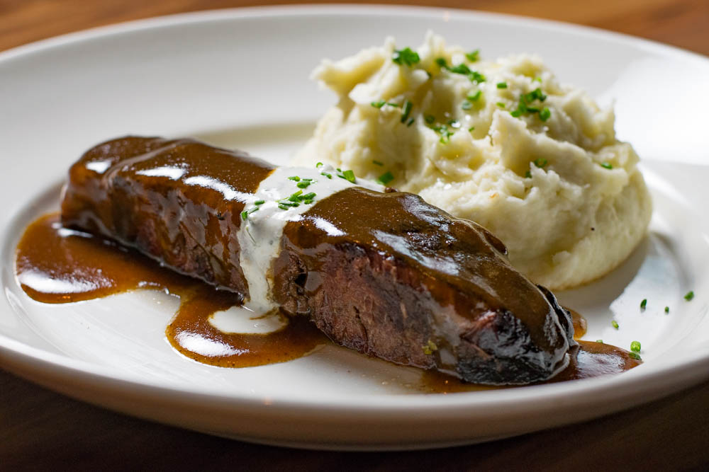 For our entrees, we ordered the Hoisin Marinated Pork Medallions (sugar snap peas, shiitake mushrooms, ginger, garlic) and the Braised Short Ribs (mashed potatoes, horseradish cream, and beef jus). We were floored with how fantastic these dishes tasted. Paul Martin’s aims to serve simple but high quality food that tastes great and they do just that! The pork medallions were some of the juiciest pieces of pork we’ve ever had. The snap peas and mushrooms tasted just as fresh as our salad did earlier. The short ribs were tender and delicious. Say what you want about not noticing the difference between standard beef and grass-fed but there is absolutely a difference and it is apparent in this entree (not to mention the beef jus was glorious). The mashed potatoes were killer! Well seasoned and that perfect balance between creamy and lumpy (we prefer lumpy at home).