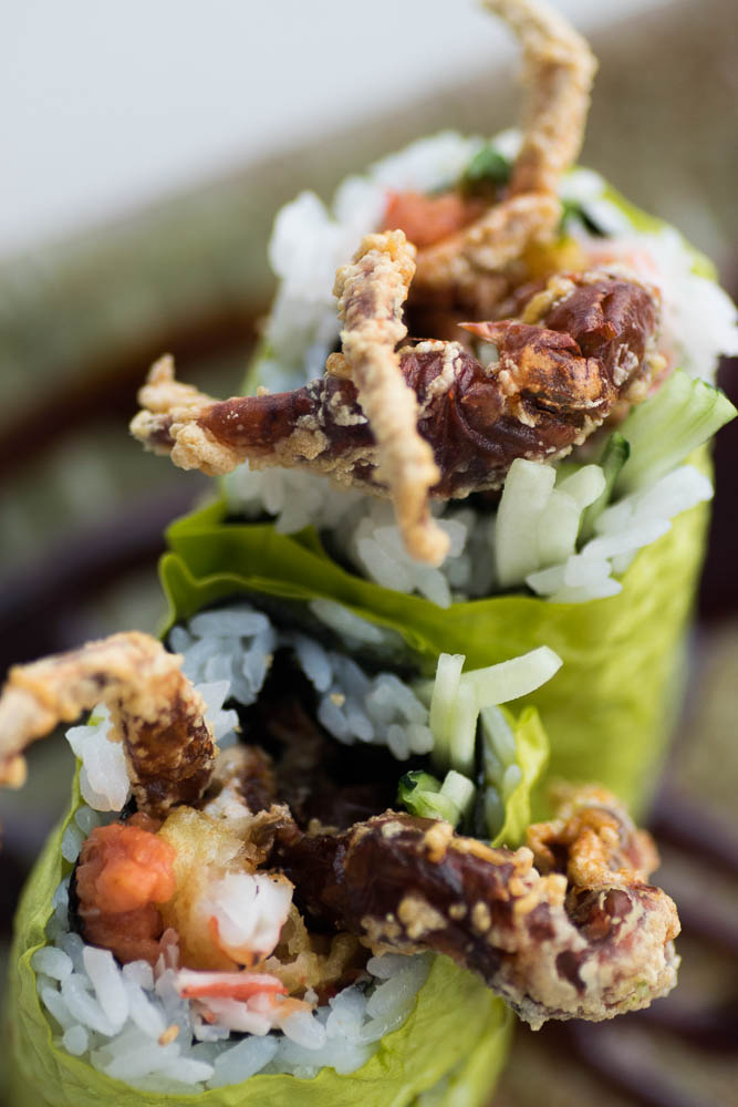 - Morning Dew Soy Paper Maki (shrimp tempura, spicy crab mix and avocado)- The Morning Dew Soy Paper Maki is basically a Shrimp Tempura Roll that uses soy paper instead of nori. This roll is a great starter roll for someone looking to explore sushi without getting into the overly “ocean-y” flavors. The lack of nori and tempura battered shrimp tone down the typical seafood flavor, making this roll sort of a shrimp po’boy of sushi rolls.