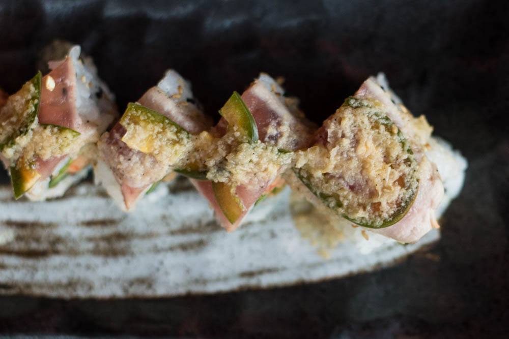- Japengo Roll (spicy crab, asparagus, avocado, takuwan, seared tuna, jalapenos and tataki sauce)- With takuwan (spicy pickled daikon radish) and jalapeno, this roll is tart and spicy yet balanced. The tataki sauce is a traditional pairing for seared tuna, yet this roll is not traditional in the slightest. The asparagus in this roll was also a highlight, providing a great flavor and crunch. [Matthew’s favorite roll of the evening]