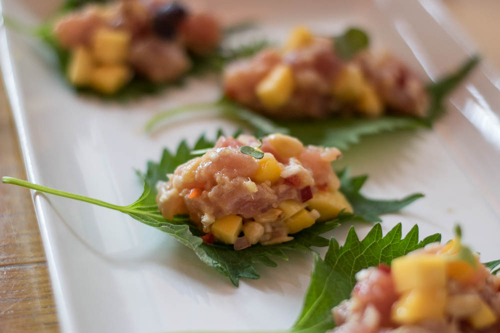 - Yellowfin Tuna Poke- tuna, mango, fresno chili, shiso leaf