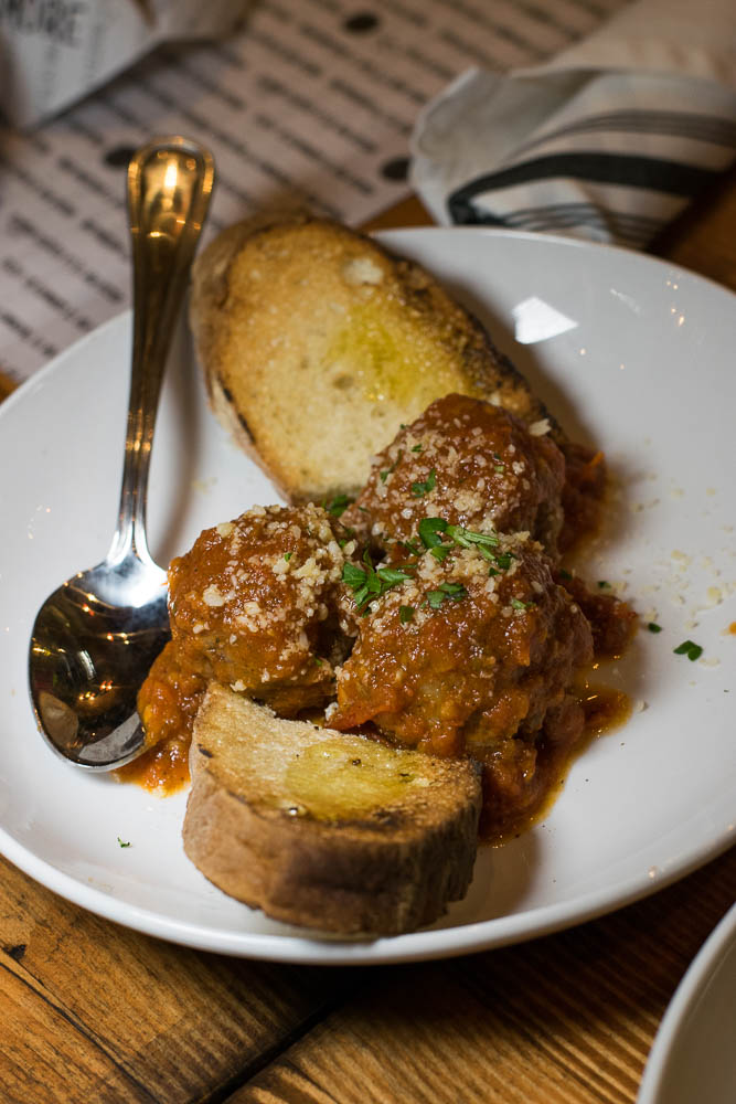 The appetizers showcase this fusion beautifully. One of Fernanda’s favorites, the Roasted Barbabietole (fire-roasted beets served over a bed of arugula and spicy yogurt sauce) is a great example. The house made yogurt sauce has finely diced serrano peppers added in giving the earthy beets some much needed acidity. Normally we aren’t fans of beets but we went back for seconds and thirds on this one! We also tried the Polpette (Italian style meatballs made with Niman Ranch beef and pork, served with a spicy tomato sauce and bread) and the Zucchine Fritte (Paper thin slices of flash fried zucchini served with labneh yogurt dipping sauce). You haven’t lived until you’ve tried the Zucchine Fritte, it is perfectly fried and crispy. The meatballs incredible, the combination of pork and beef made them tender, juicy and full of flavor!