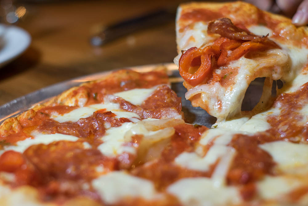 Following the salads, were some of Wink 24’s wood fired pizzas. We tried the Prosciutto (prosciutto crudo, arugula, mozzarella, Parmigiano Reggiano & tomato sauce), The Diavola (tomato sauce, onions, sopressata, roasted bell peppers & oregano, and The Formaggi (Ricotta, Fontina, Parmigiano Reggiano & Mozzarella, drizzled with truffle oil & topped with caramelized red onions). Each pizza was epic in its own right! At the suggestion of Fernanda we added the chile morita (a smoky and semi-spicy chile oil) to each pizza. Our overall favorite of the 3 was the Prosciutto. Arugula is one of our favorite our favorite pizza toppings so we may be slightly biased. However, the unsung hero of the 3 pizzas was their crust. Crispy with just enough give and well salted, it is exactly how a pizza crust should be served.