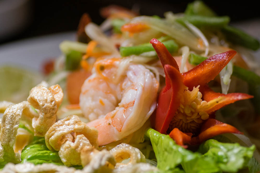 - Pineapple Fried Rice (Jasmine rice, pineapple, yellow curry, golden raisins, cashews, shrimp)- We love a good fried rice. This rice was sweeter than a traditional fried rice and the addition of yellow curry really packed a flavorful punch. The shrimp served on it were huge, well seasoned, and perfectly cooked.